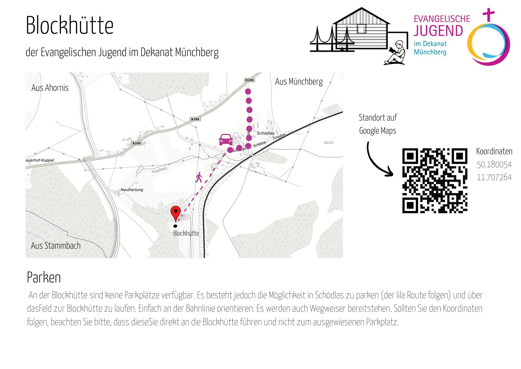 Die Blockhütte ist ein Projekt der Evangelischen Jugend im Dekanat Münchberg. Sie wurde im Jahr 1997 errichtet und bietet Platz für Jugendgruppen, gemütliches Beisammensein, Besprechungen oder einfach einen Abend am Lagerfeuer. Sie liegt auf einer kleinen Lichtung mitten im Wald in der Nähe von Schödlas.